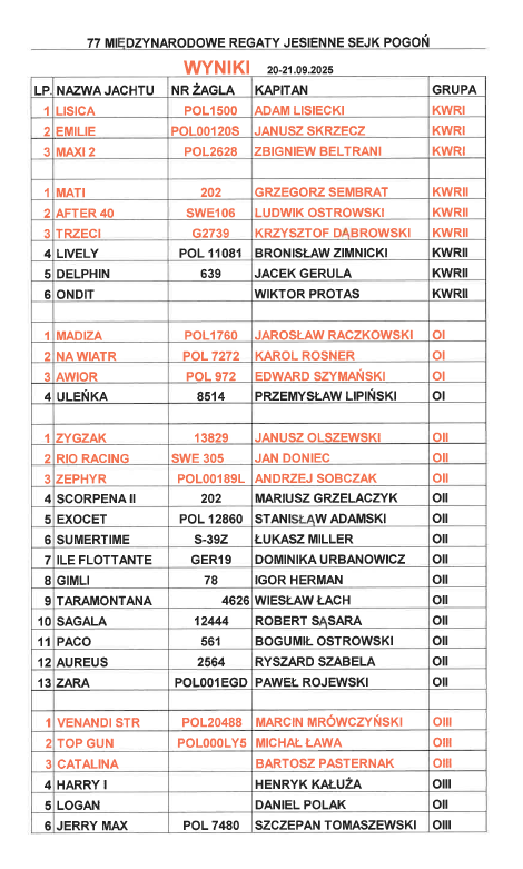 Ceremonia Zakończenia Regat, odbędzie się zgodnie z planem w sobotę 27